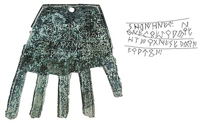 Irulegiko eskua (K.a. I. mendea), Aranzadi Zientzia Elkarteko arkeologoek Nafarroako Irulegiko herrixkan aurkitutako antzineuskarazko idazkunik zaharrena aurkeztu zuten.