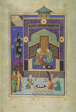 Баһрам Гур фирүзә йәшел һарайҙа. 1524/1525 йылғы миниатюра. Герат мәктәбе. Метрополитен-музей,